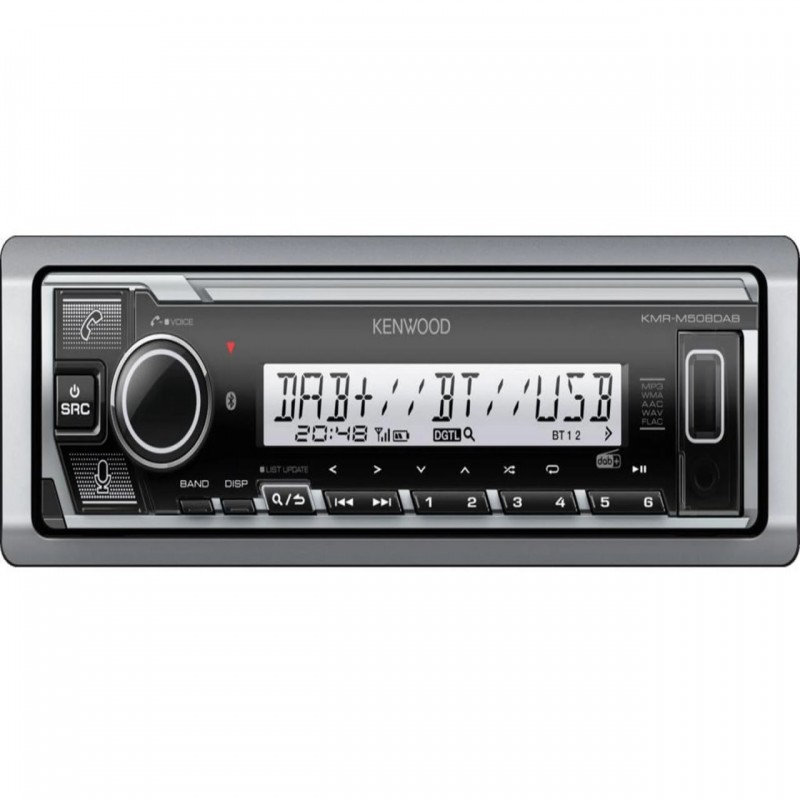 Karakteristike Kenwood auto radio KMR-M508DAB Ugrađen digitalni radio tjuner DAB+ Ugrađeni Bluetooth handsfree i audio streaming Reprodukcija MP3/WMA/AAC/WAV/FLAC LCD ekran sa 1,5 linija Promenljivo pozadisnko osvetljenje Otpornost na vlagu sa PCB konformnim premazom...