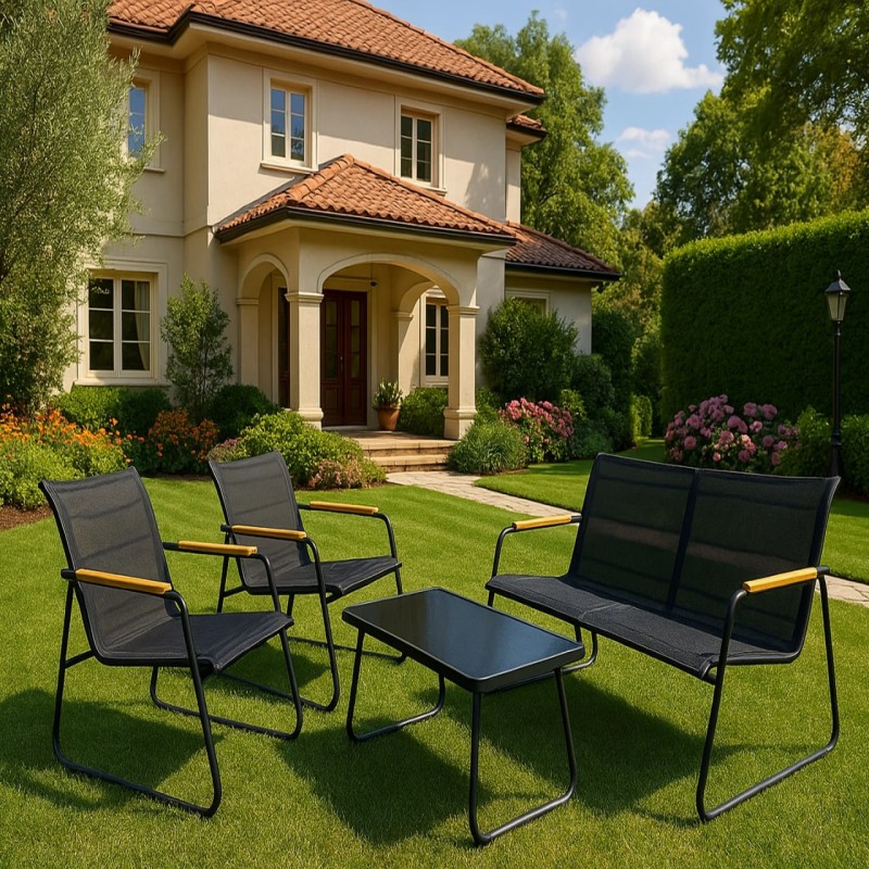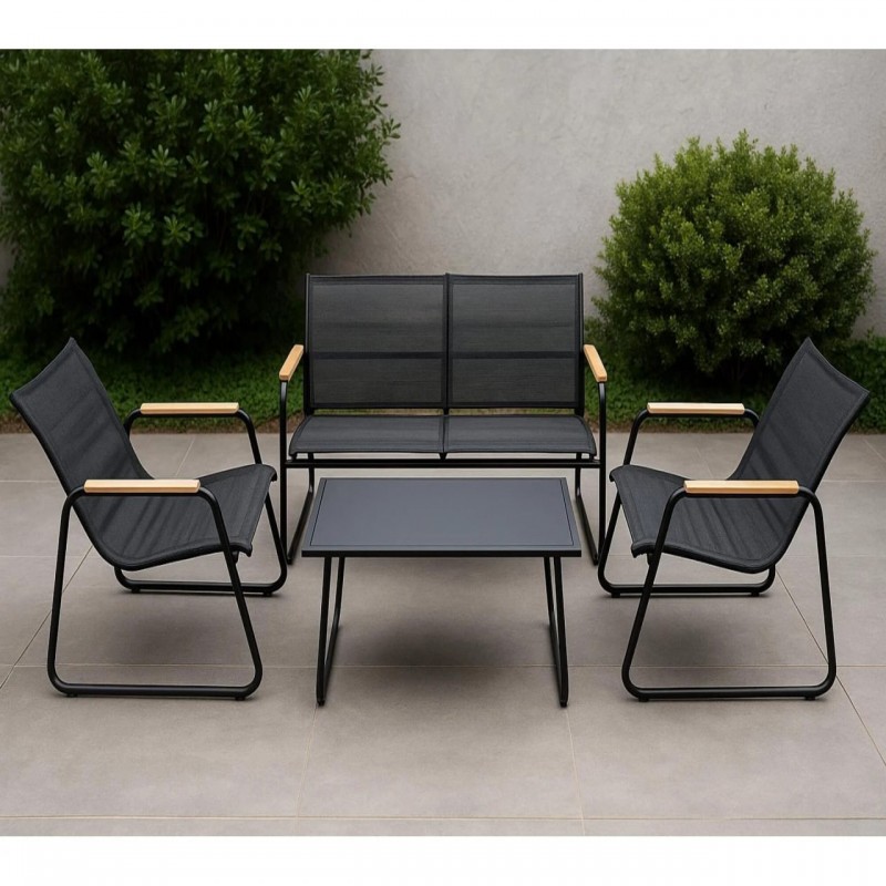 Uz baštenski set Lusil 2, svaki trenutak proveden na otvorenom postaje pravo uživanje. Ovaj elegantni četvorodelni set, koji se sastoji od dve stolice, dvoseda i stola sa kaljenim staklom, idealan je za opuštanje u dvorištu, na terasi ili balkonu. Sa čvrstim metalnim okvirom i tekstilnim detaljima koji imitiraju drvo, ova garnitura kombinuje moderni dizajn sa dugotrajnom izdržljivošću.
