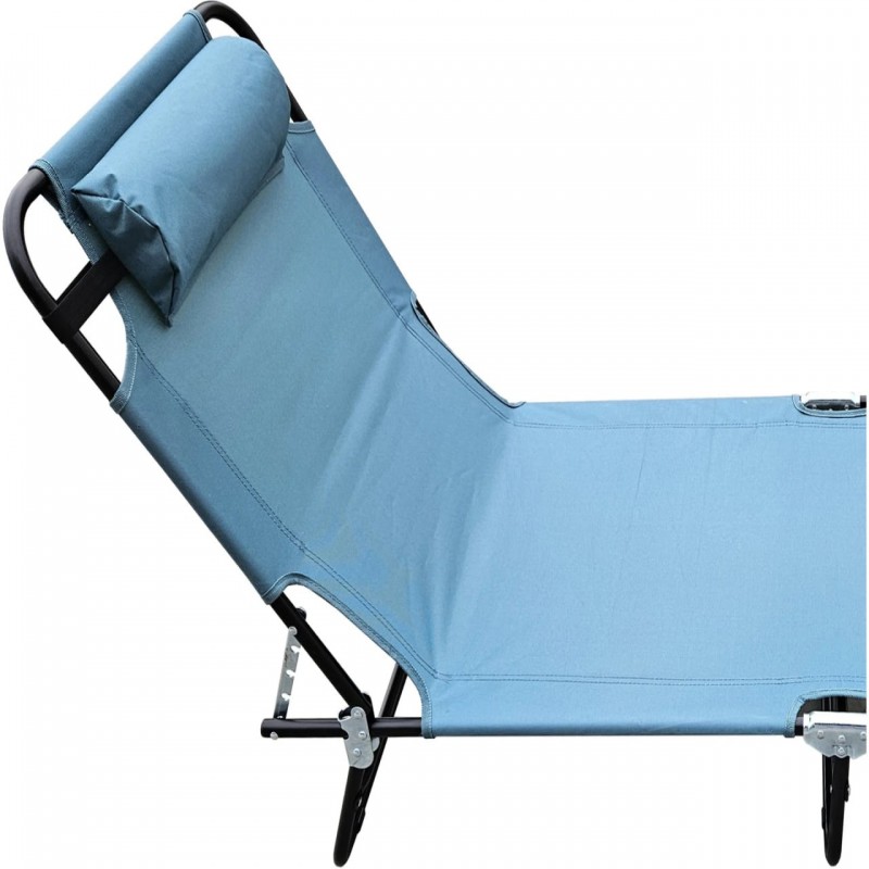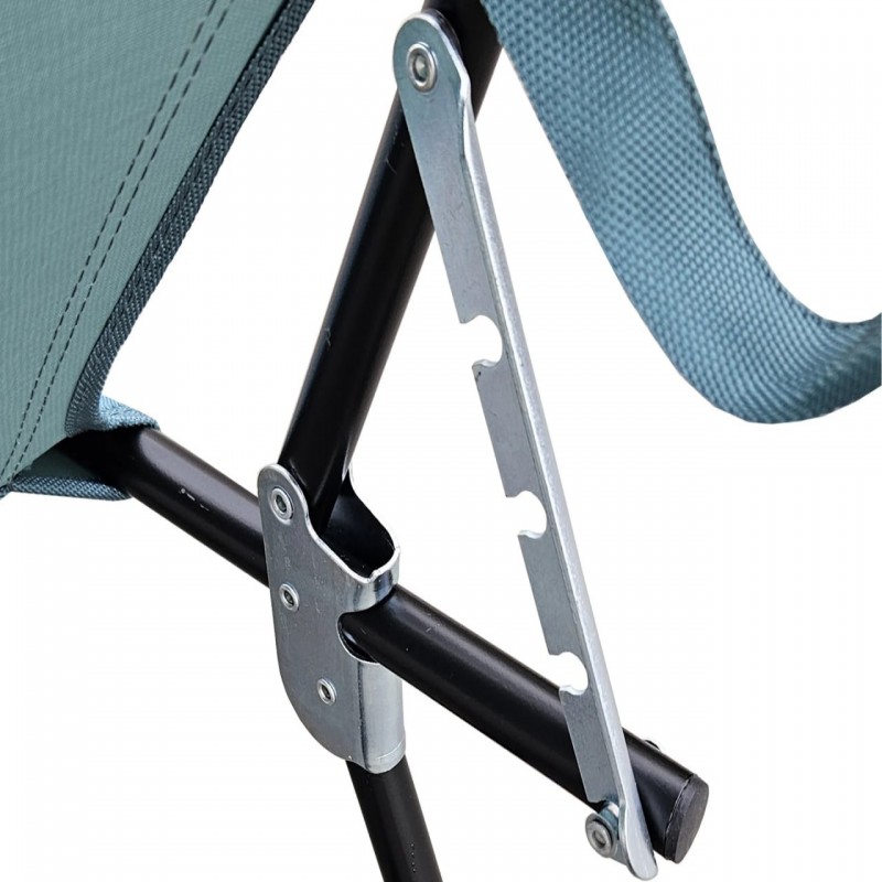 Ležaljka je izrađena od izdržljivog poliestera 600D, koji je otporan na habanje i vremenske uslove. Konstrukcija od šupljih čeličnih cevi sive boje obezbeđuje stabilnost i nosivost do 120 kg, dok ušivene ručke omogućavaju lako nošenje. Kompaktni dizajn omogućava jednostavno sklapanje i odlaganje, čineći ovaj set savršenim izborom za svaki prostor.