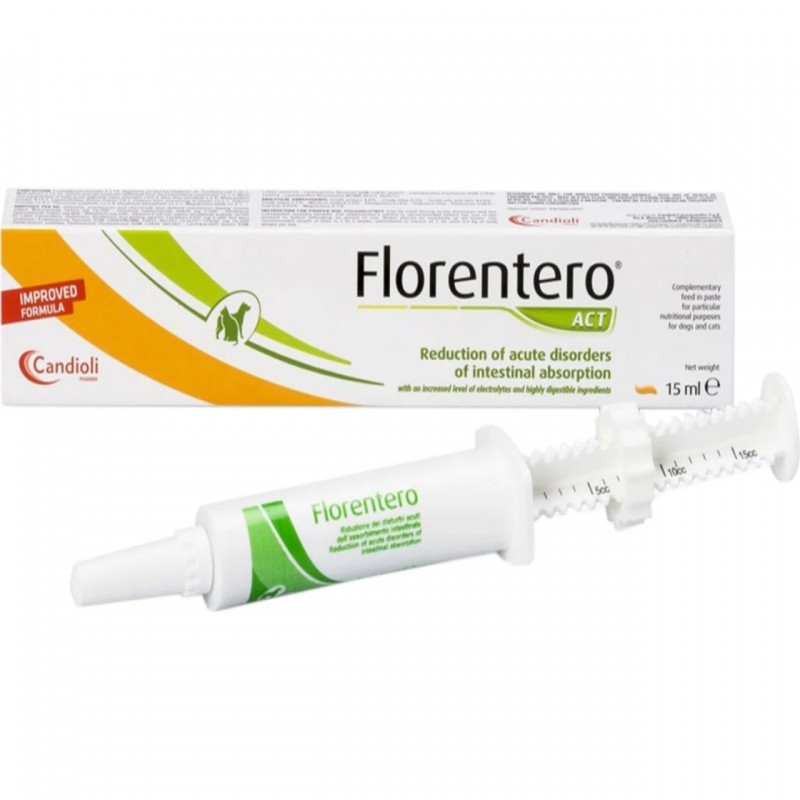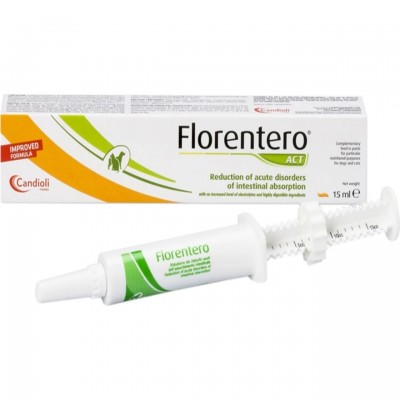 Florentero® ACT je dodatak ishrani za smanjenje akutnih poremećaja crevne apsorpcije sa povećanim nivoom elektrolita i visoko svarljivih sastojaka. Florentero® ACT se može koristiti u slučajevima rizika od digestivnih poremećaja, tokom ovih poremećaja i oporavka od njih. Za pse i mačke, odrasle i štence/mačiće Svaki ml sadrži: Lactobacillus acidophylus D2/C...