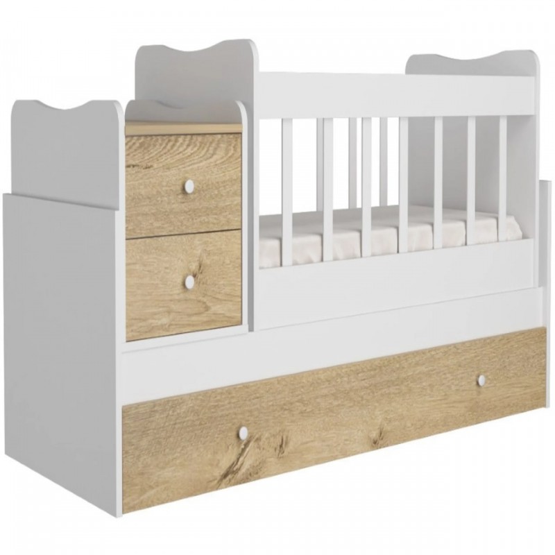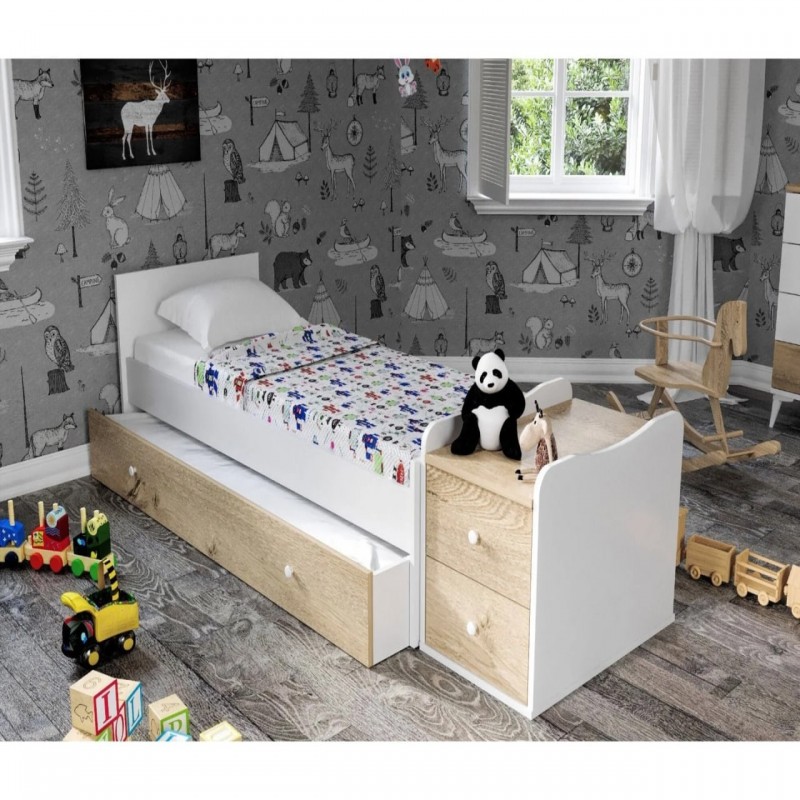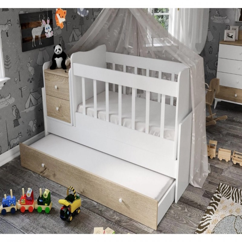 Praktičan i udoban 2u1 krevetac za bebe na razvlačenje. Ogradica može da se odstrani, a izvlači se još jedan krevet (fioka). Dodatni prostor može biti namenjen za starijeg batu ili seku ili za buduće vreme, kada beba poraste. I to nije sve, bočno se nalazi i noćni stočić sa fiokicama, gde mališani mogu odložiti omiljenu igračku, bez koje ne mogu zaspati. Svakako, ovaj model je funkcionalna i dugročna investicija za bezbrižne snove vaše dece. Sa širinom od 175 cm, visinom od 67 cm i dubinom od 95 cm, krevet pruža dovoljno prostora za udobno spavanje i igru. Površina za spavanje je dimenzija 120 cm x 60 cm, što ga čini idealnim za bebe i malu decu. Dizajniran je tako da se lako uklopi u dečije sobe, pružajući stabilnost i funkcionalnost.