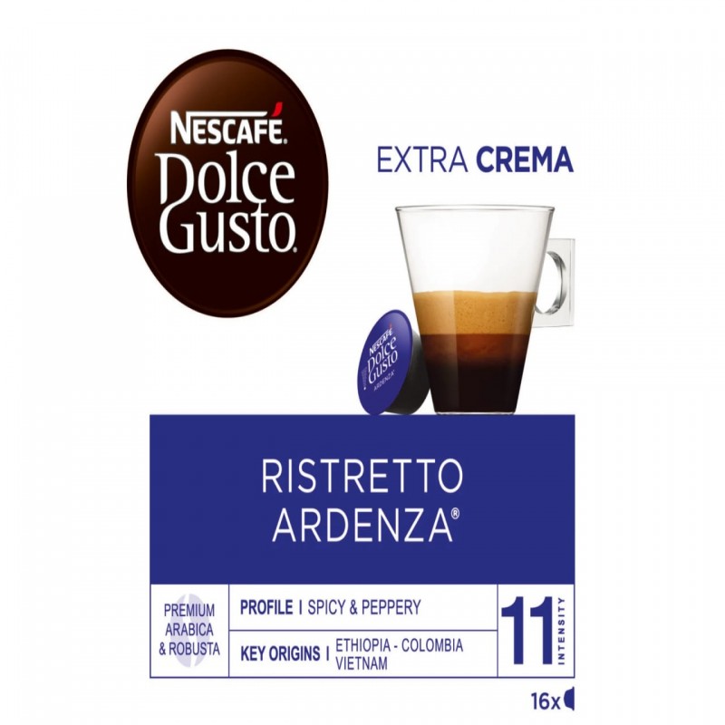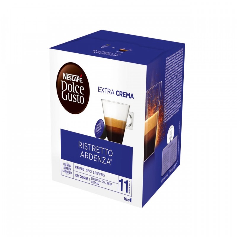 Otkrijte NESCAFÉ® Dolce Gusto® Ristretto Ardenza, tipičnu italijansku kafu, prženu do tamne nijanse. Kraću od espressa (35 ml), intenziteta 11. Naši talentovani stvaraoci kafe pomešali su južnoameričku arabica kafu, voćnih nota, i azijsku Robusta kafu za jedinstvenu aromu NESCAFÉ® Dolce Gusto® Ristretto Ardenza kafe.