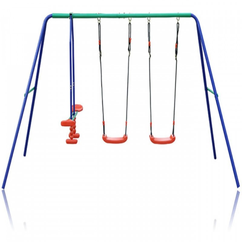 Set sadrži: Dve klasične ljuljaške i jednu klackalicu za dvoje dece